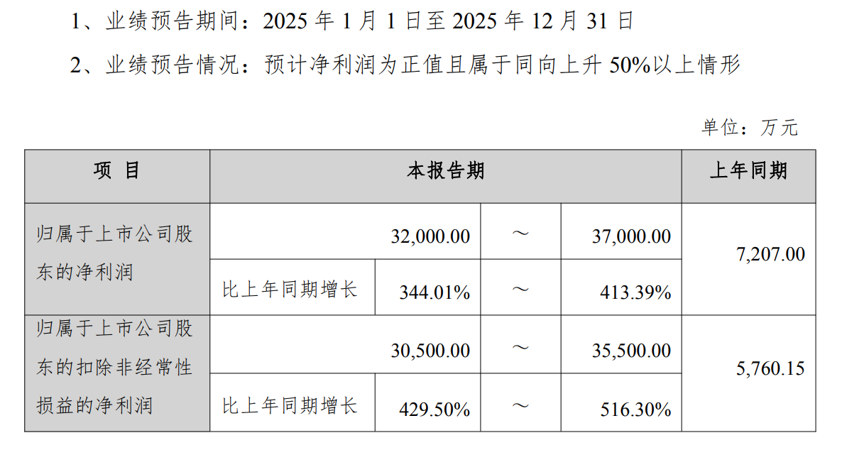 长芯博创,这个股票2025年净利润增长344%到413%,净利润达到3.2亿到3.7亿元。