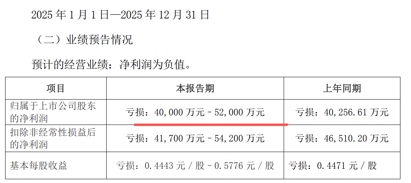 特发信息,这个股票2025年亏损了4亿到5.2亿元。