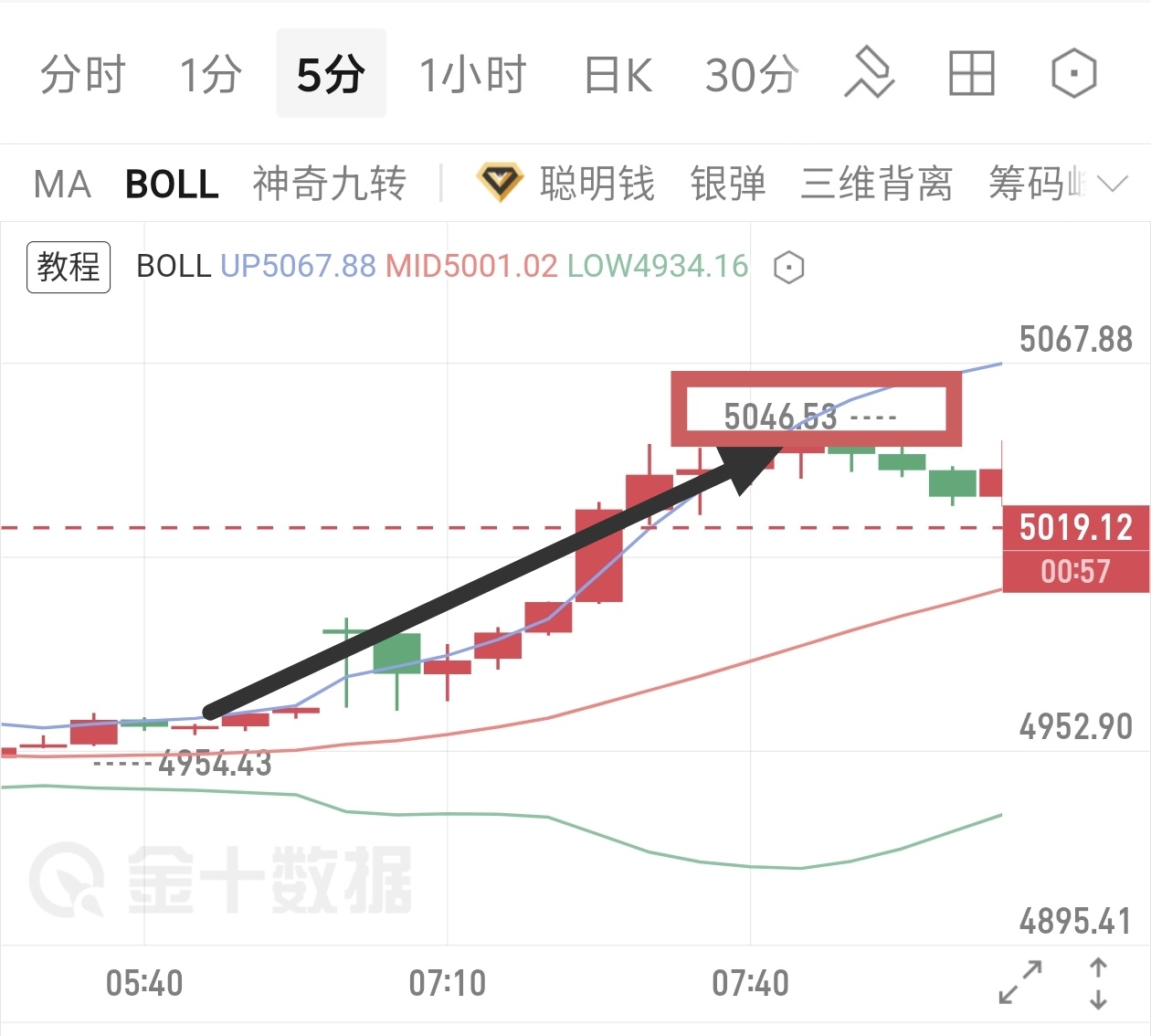 昨日给的多单思路再次得到验证,目标位5000-5030也已经抵达,静待5100的