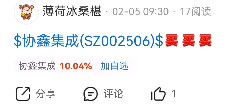 温馨提示: 1.根据《证券法》规定,禁止编造、传播虚假信息或者误导性信息,扰乱证券市场;2.用户在本社区发表的所有资料、言论等仅代表个人观点,与本网站立场无关,不对您构成任何投资建议。用户应基于自己的独立判断,自行决定证券投资并承担相应风险。《东方财富社区管理规定》