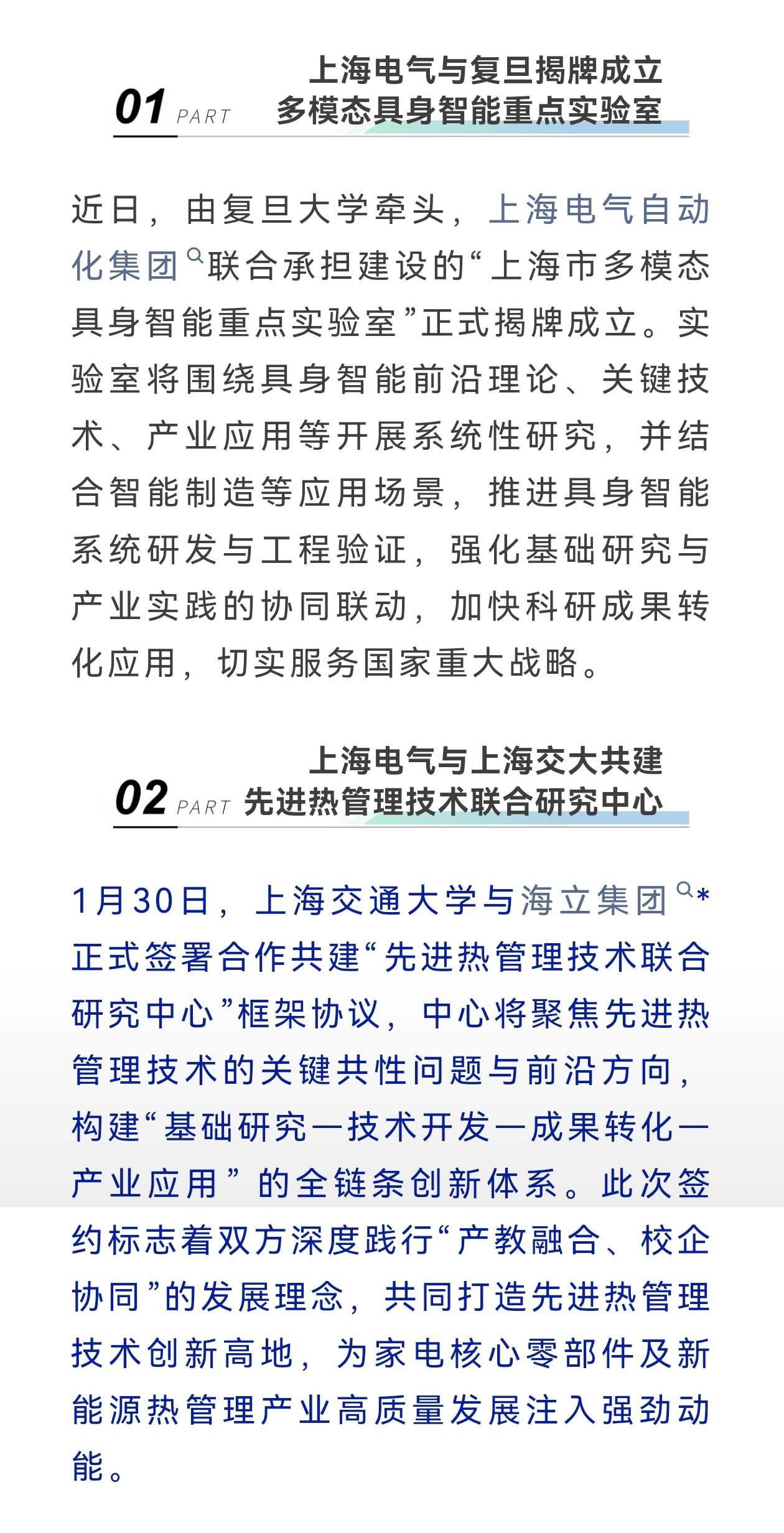 上海电气与复旦大学、交通大学相关联的产学研合作,将助力海立新质生产力腾飞!