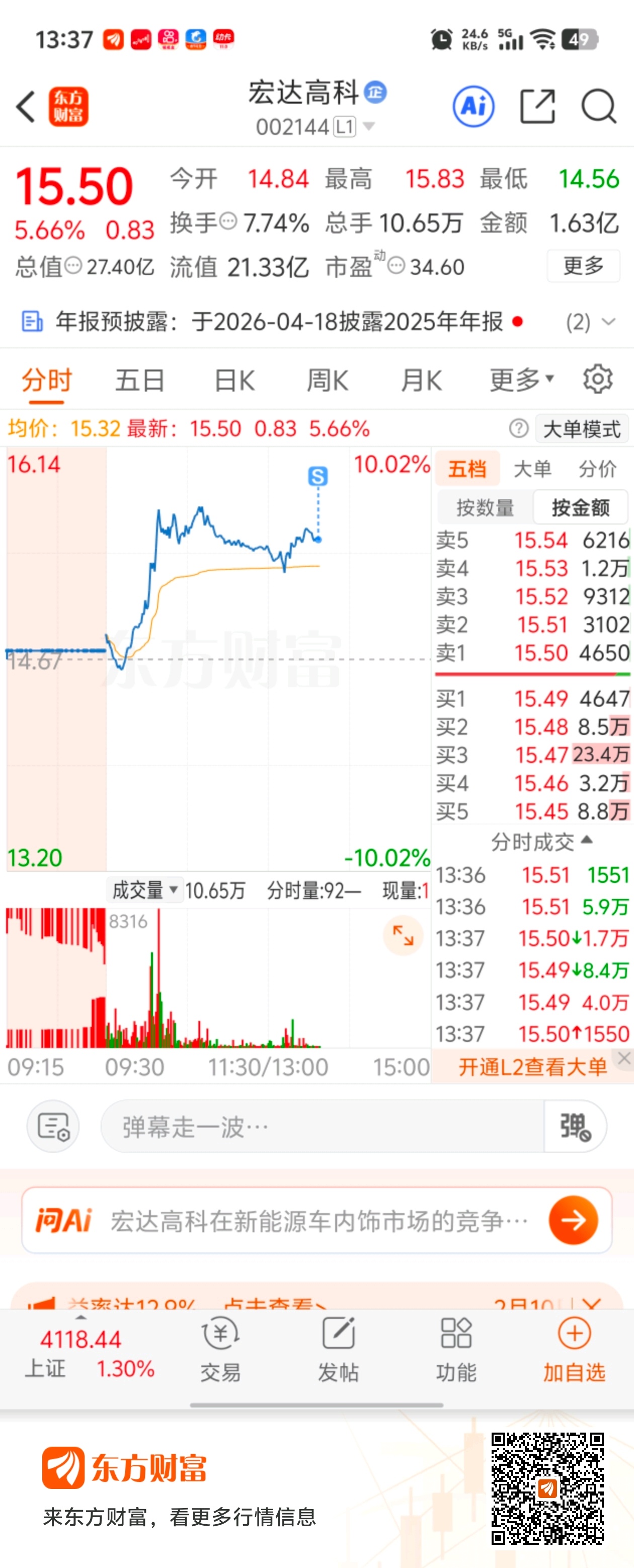 温馨提示: 1.根据《证券法》规定,禁止编造、传播虚假信息或者误导性信息,扰乱证券市场;2.用户在本社区发表的所有资料、言论等仅代表个人观点,与本网站立场无关,不对您构成任何投资建议。用户应基于自己的独立判断,自行决定证券投资并承担相应风险。《东方财富社区管理规定》