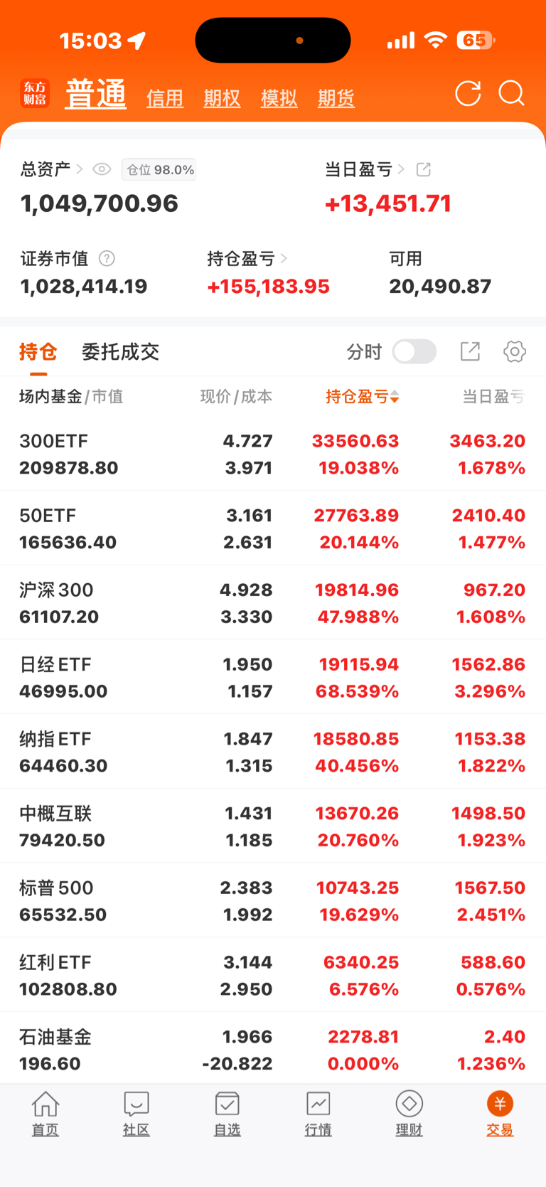 投第833天(2026年2月9日)今日盈亏:赚13451元定投买入:纳指、消费条