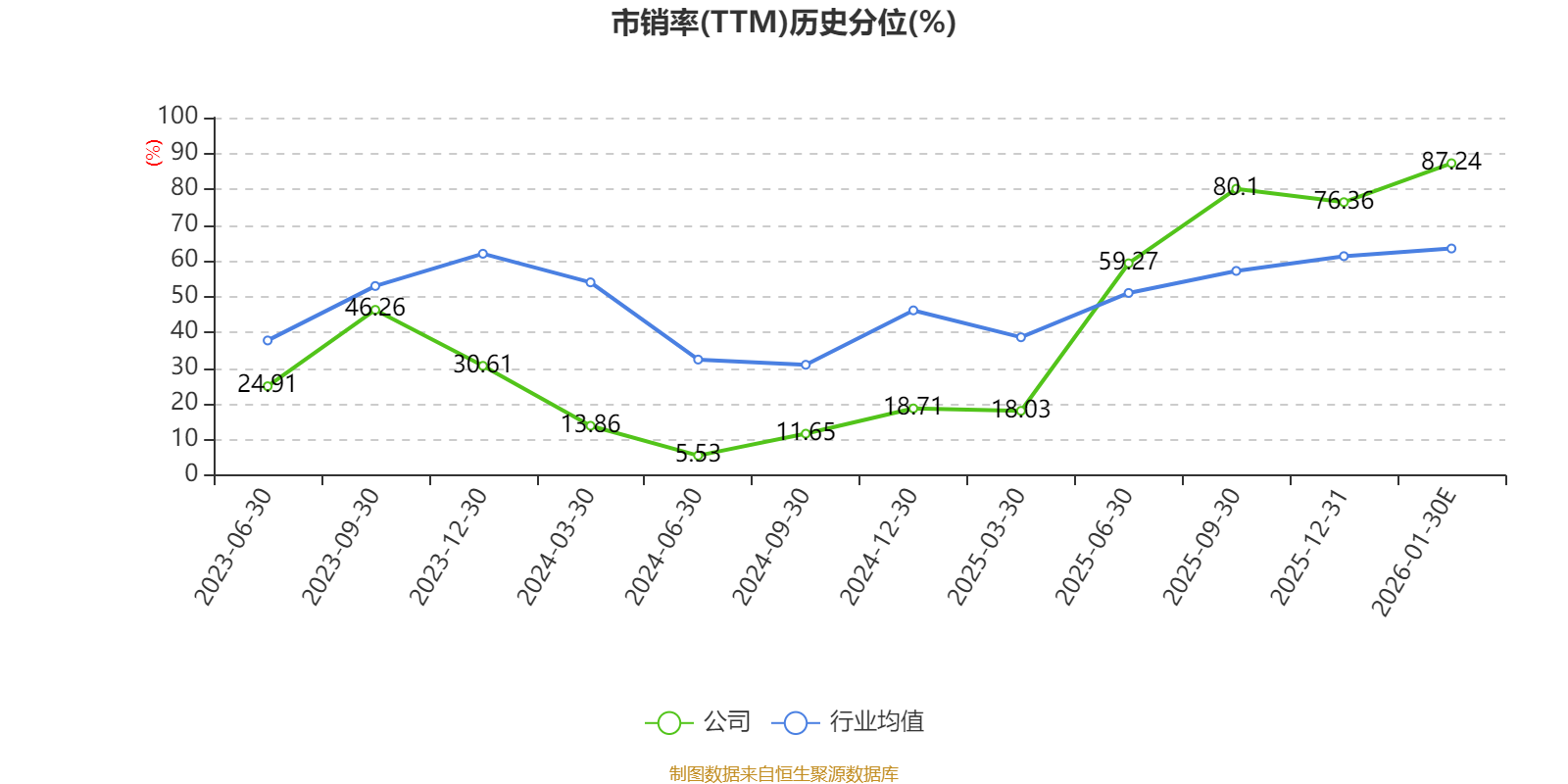 文中市盈率和市销率采用TTM方式,即以截至最近一期财报(含预报)12个月的数据计算。市净率采用LF方式,即以最近一期财报数据计算。三者的分位数计算区间均为公司上市以来至最新公告日。