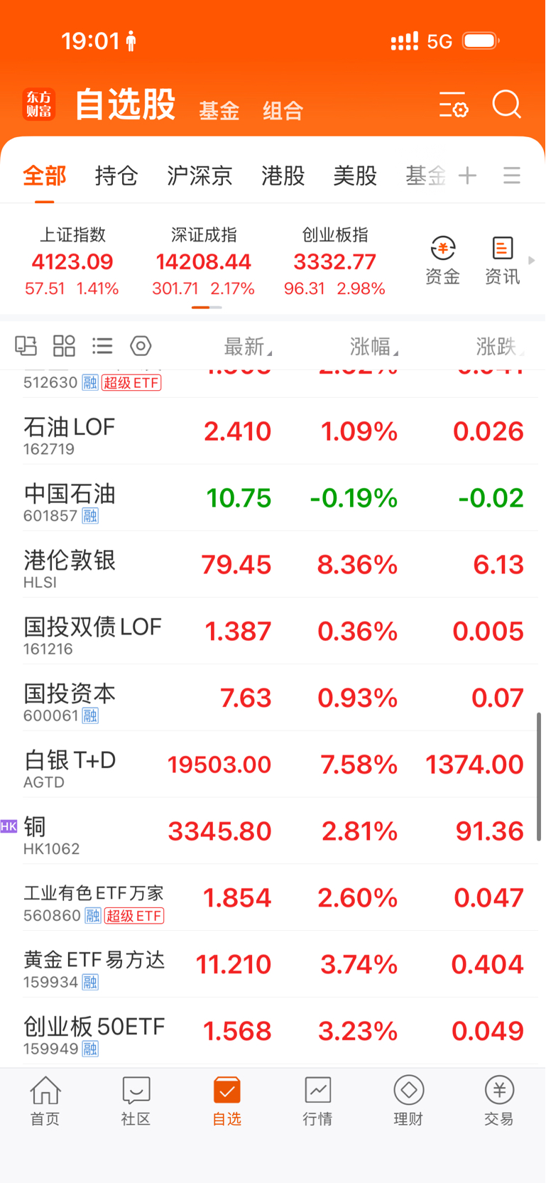列表今天大部分是红的