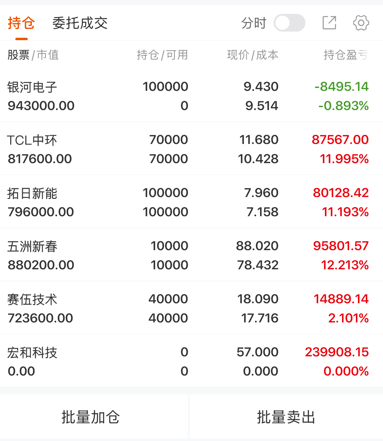 宏和科技603256:今天在三大指数集体走强的情况下宏和科技走的还是有点不及预期,现在股价也是来到了五日和十日线的下方,成交量也是没有明显放量,说明市场中的做多意愿不强,接下来还要震荡的预期更大,留着没有太大的意思,短线去弱留强,先考虑跟他说拜拜了,后面如果没法放量,很难有较好的表现。虽然下午有拉升,但是下午的拉升质量没有上午的强。
