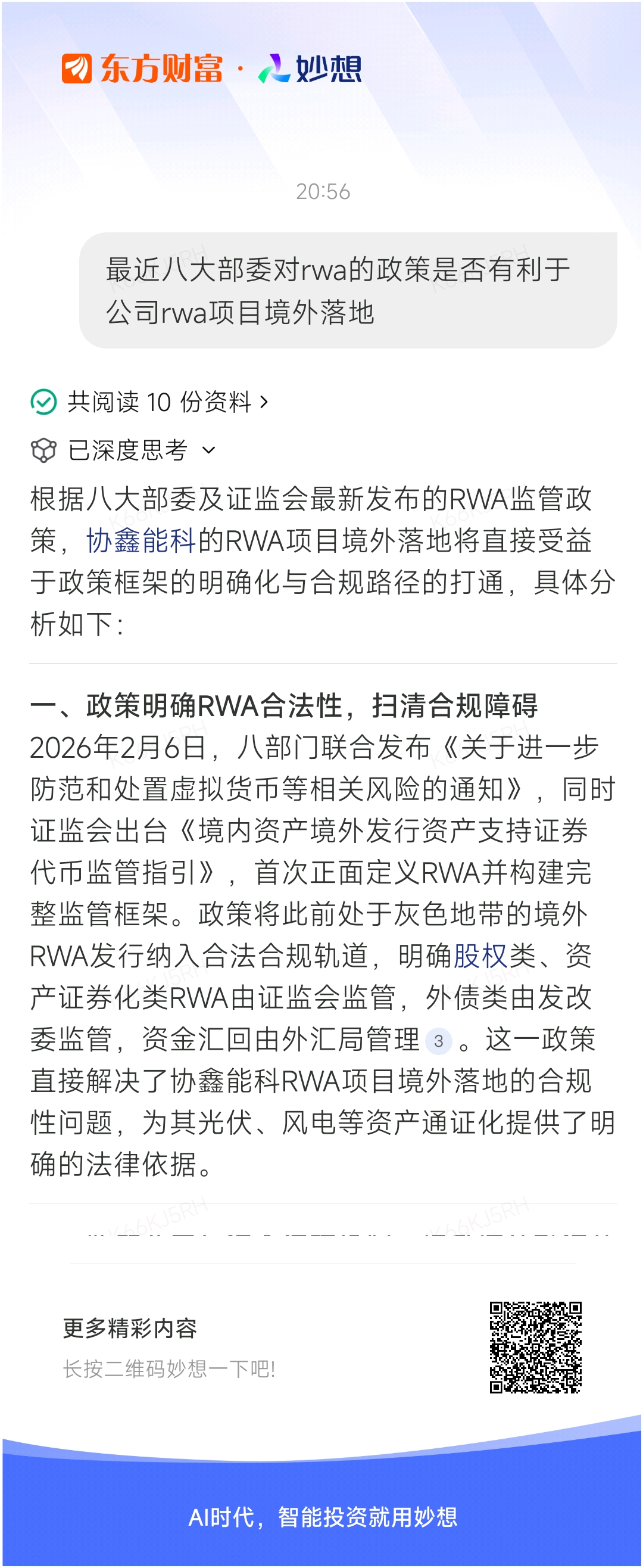 #@妙想,你怎么看?# 妙想一下:最近八大部委对rwa的政策是否有利于公司rwa项目境外落地