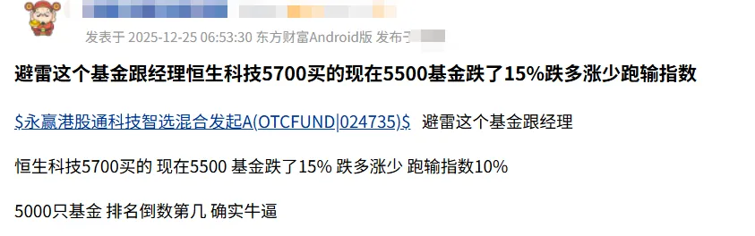 “避雷这个基金经理……跌多涨少,跑输指数10%,5000只基金,排名倒数第几……”,有基民表示。
