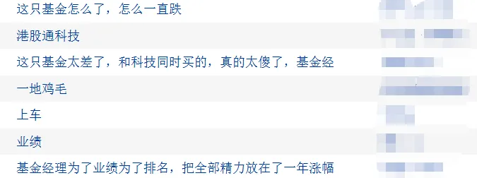 有基民称“这个基金经理管理的另外一个基金,创下一年200%多涨幅,我就是顺着那个基金找过来的”,另一基民赶紧提醒,“别来了,这个是倒数第一的基金”。