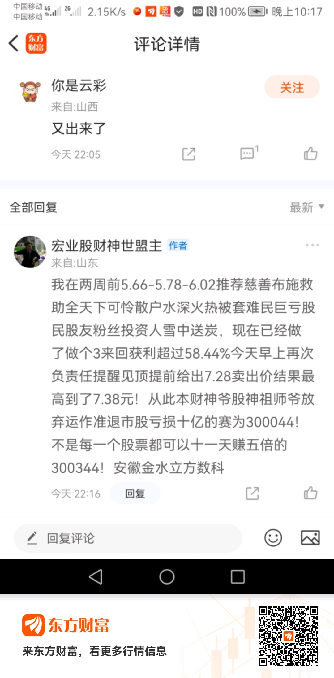 温馨提示: 1.根据《证券法》规定,禁止编造、传播虚假信息或者误导性信息,扰乱证券市场;2.用户在本社区发表的所有资料、言论等仅代表个人观点,与本网站立场无关,不对您构成任何投资建议。用户应基于自己的独立判断,自行决定证券投资并承担相应风险。《东方财富社区管理规定》