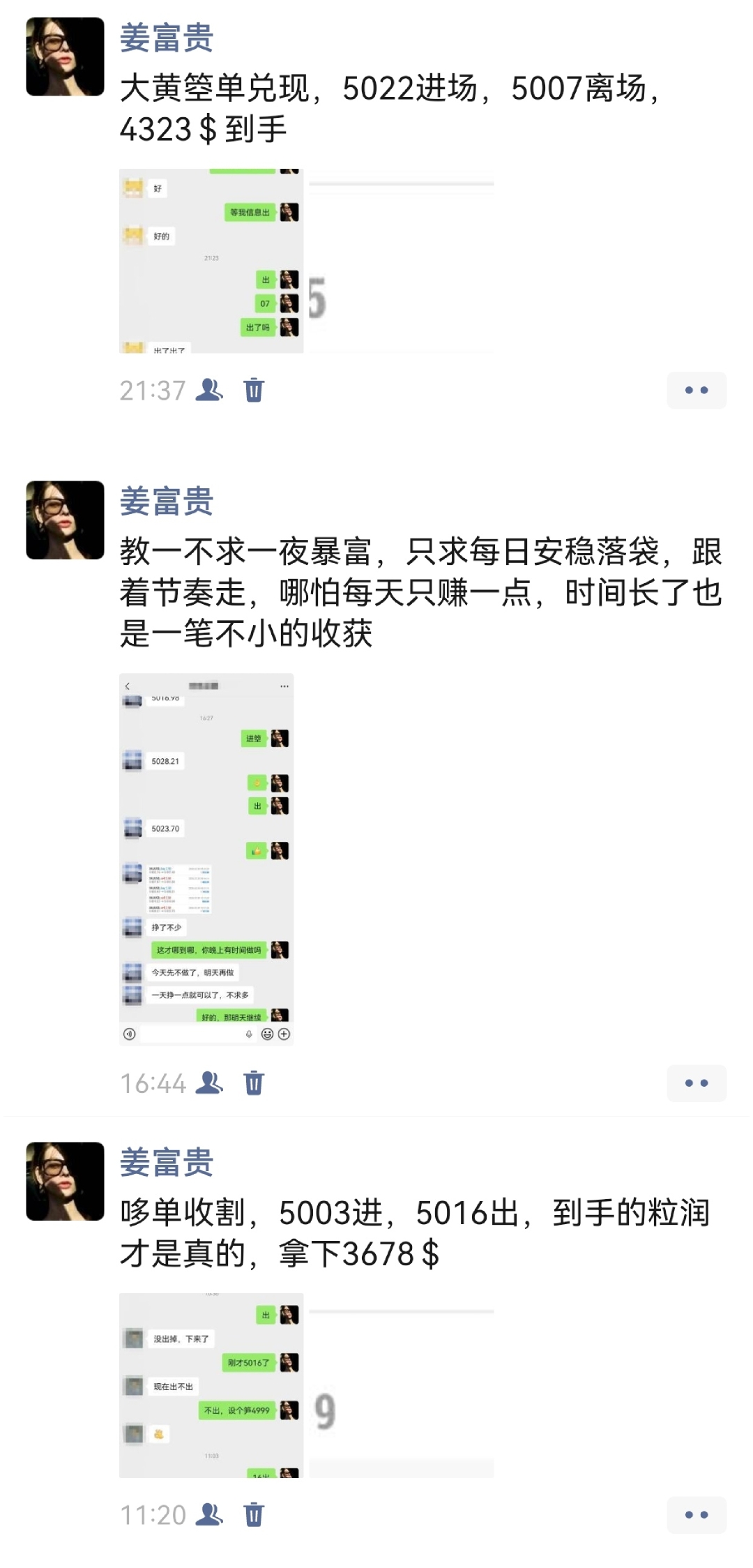 今日大黄教一节奏清晰,午间依托支撑位果断开多,粒润稳稳落袋,午后在高位震荡区间快进快出,多笔短单来回收割,积小利成大胜。晚间预判回调,5022高位开空,5007离场再添一笔收获