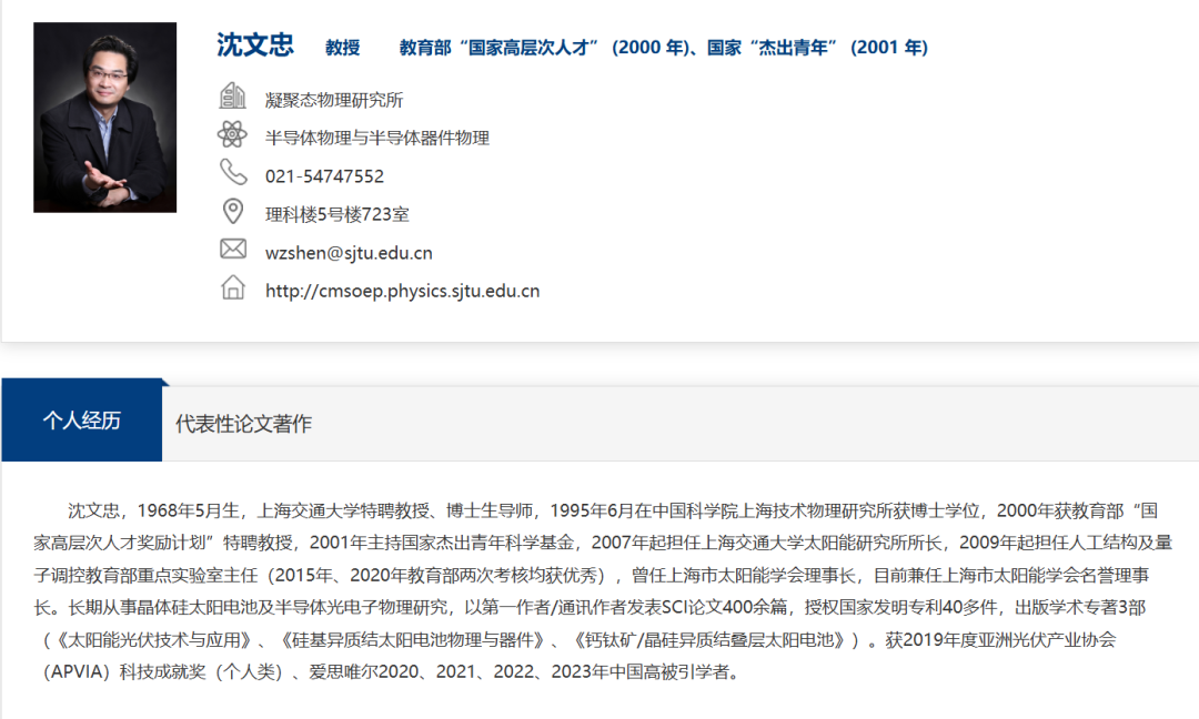 1. 沈文忠:钙钛矿技术负责人,国家重点研发计划首席科学家