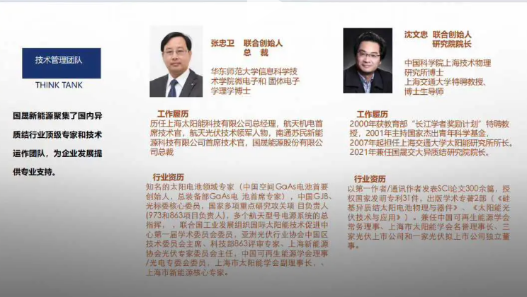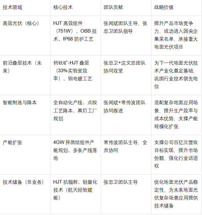 3. 技术团队构建:组建“光伏材料+工艺研发+产业化落地”复合型研发团队,整合沈文忠(钙钛矿)、张闻斌(高效光伏)等核心人才,搭建完善的研发体系,推动技术研发与产业应用无缝衔接;