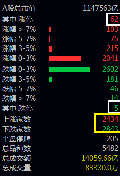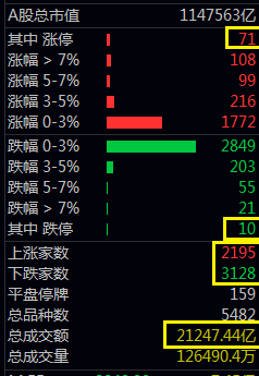 缩量收星,绿盘大于红盘,跌停家数相比上午增加,