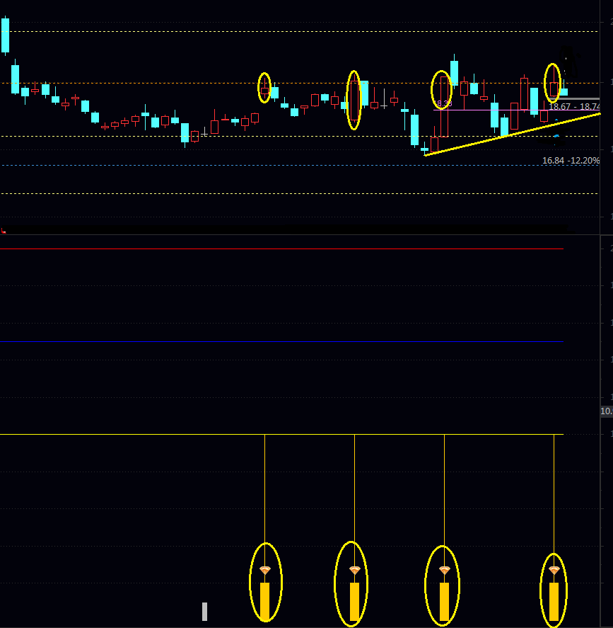 大形态箱体,四次上冲触及后都出现回撤,近期两次上冲回踩支撑形成箱体内小趋势低点抬高的走势,振幅在萎缩,底仓不动,只做加仓增减,等最终结果.....