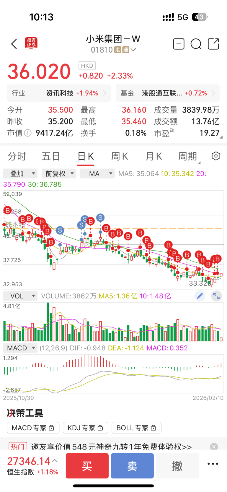 #炒股日记# 一直在补仓,只因相信小米一定会变好,相信雷总!
