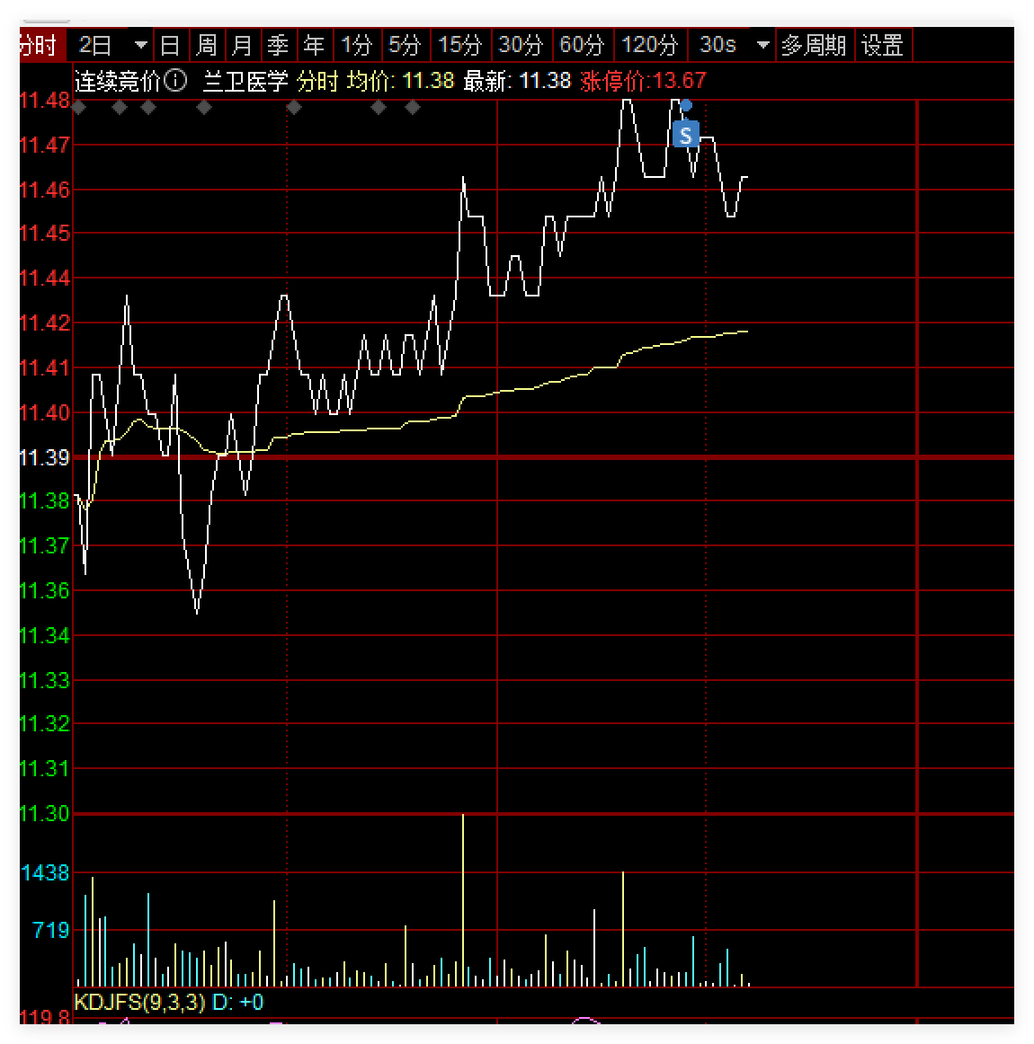 $兰卫医学(SZ301060)$ 5分钟级别抛压,计划日内做个T