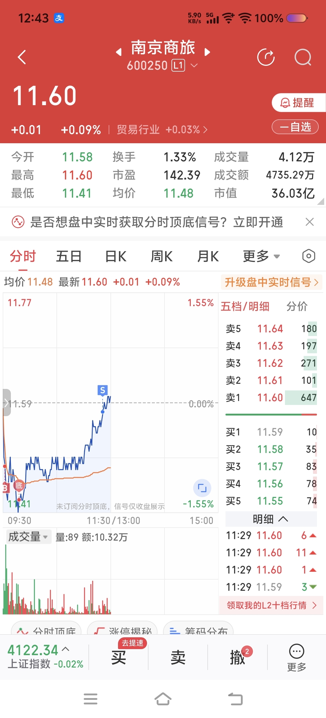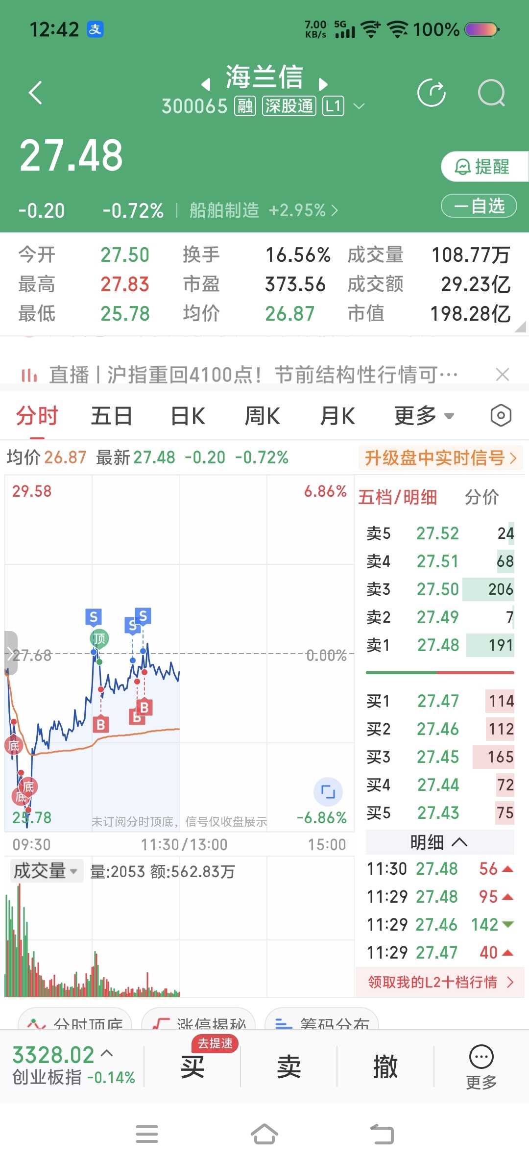 海兰信继续T,南京商旅减仓1笔,中国电建加仓2笔
