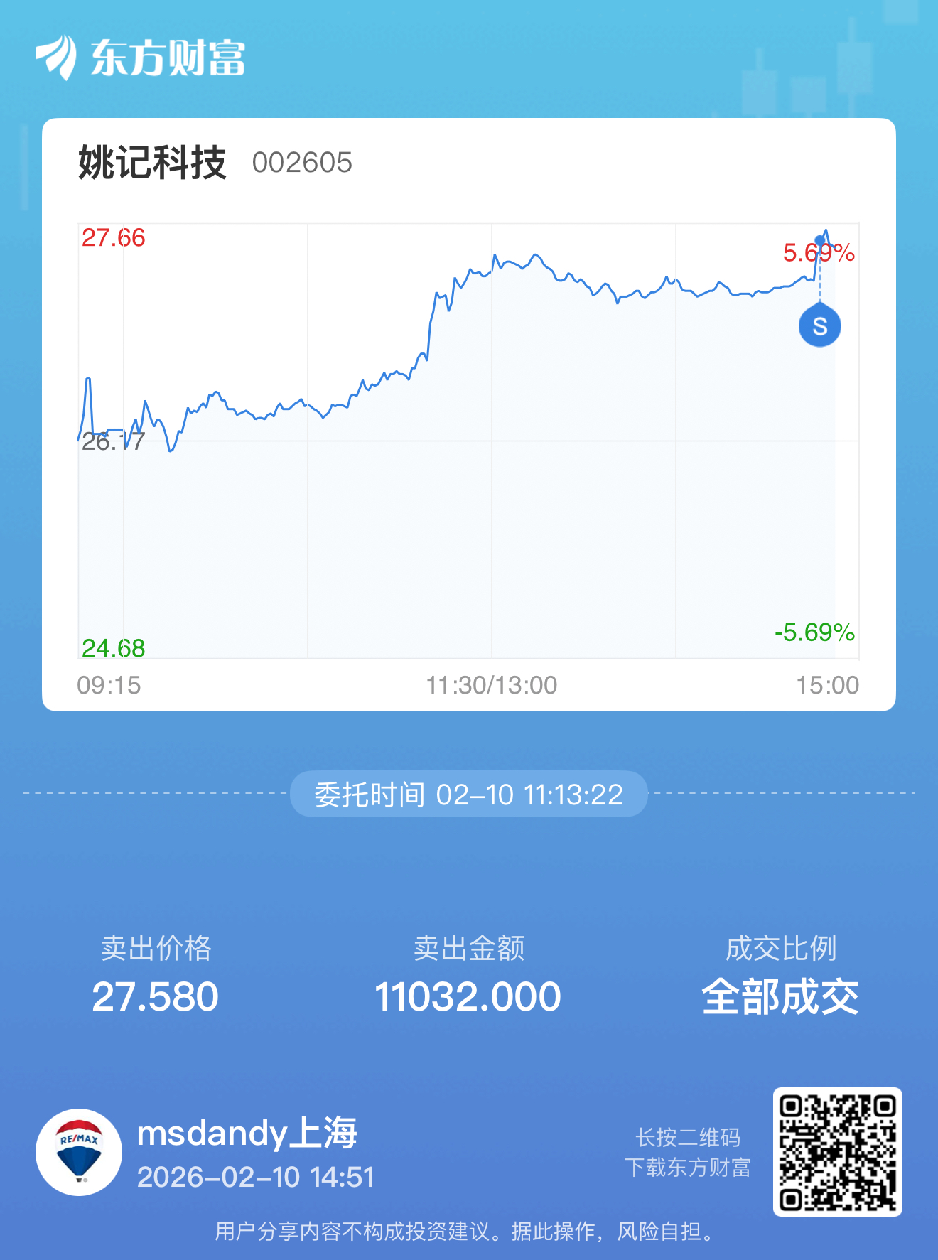 委托标的:姚记科技买卖方向:卖出笔记:前几天买的,今天保本先T