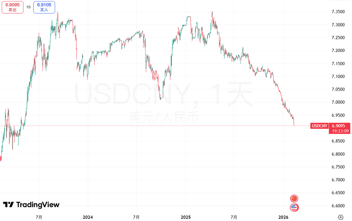 #行情在岸人民币兑美元自2023年5月以来首次突破6.91。
