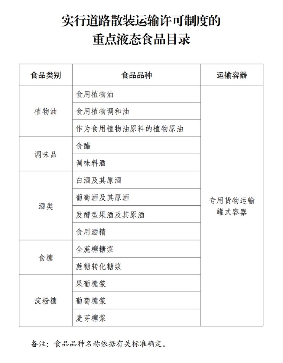 市场监管总局发布《重点液态食品道路散装运输准运管理办法》: