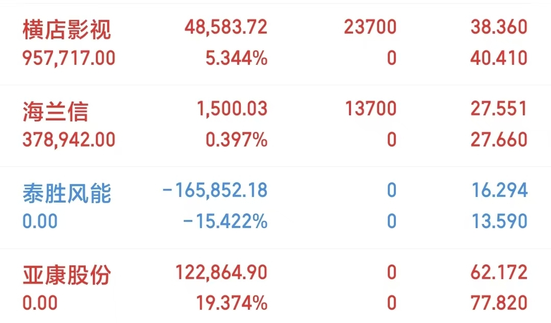 目前持仓:横店影视~海兰信今日清仓:亚康股份~泰胜风能