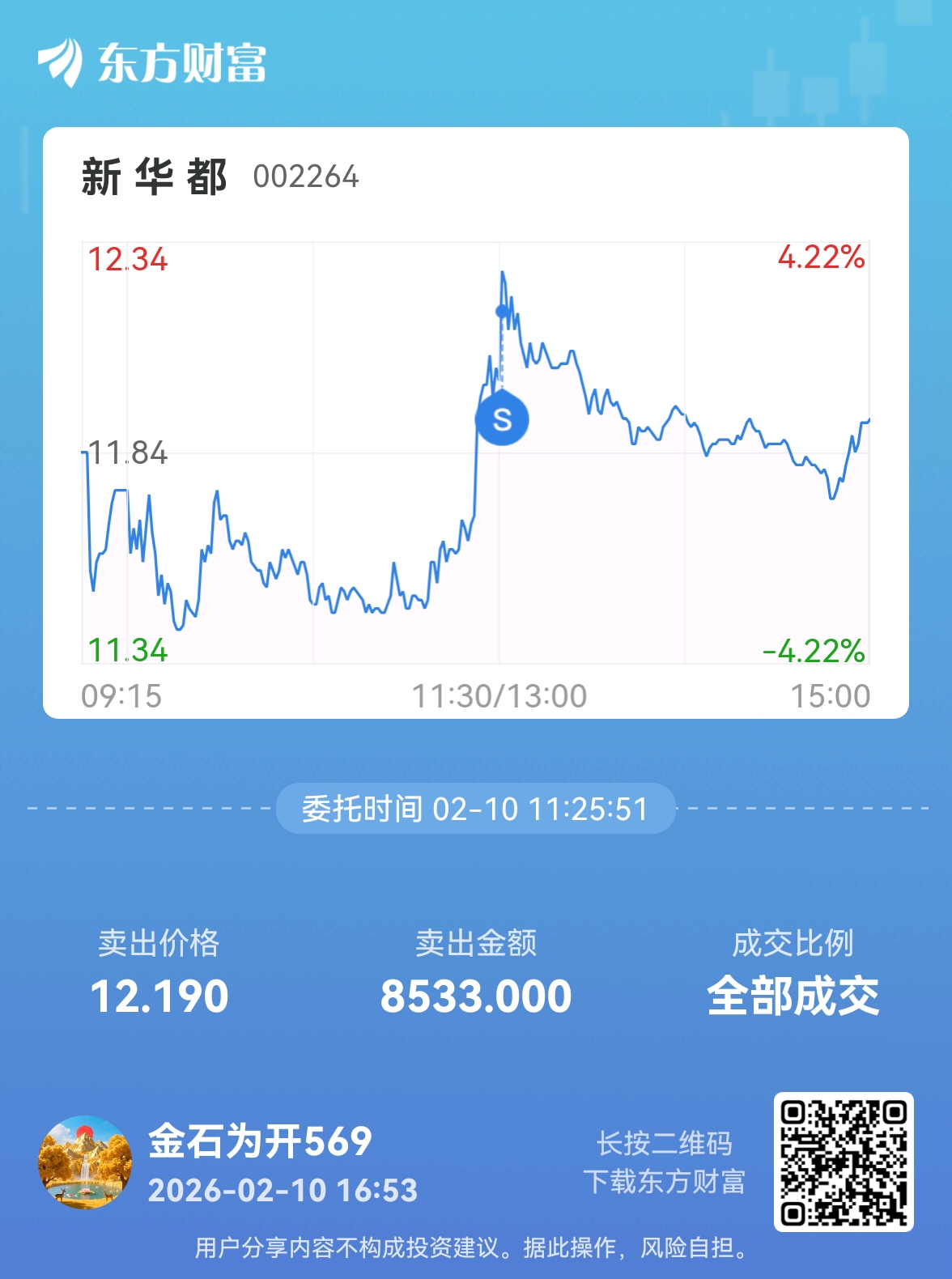 委托标的:新华都买卖方向:卖出笔记:只吃鱼身,放弃鱼头鱼尾。