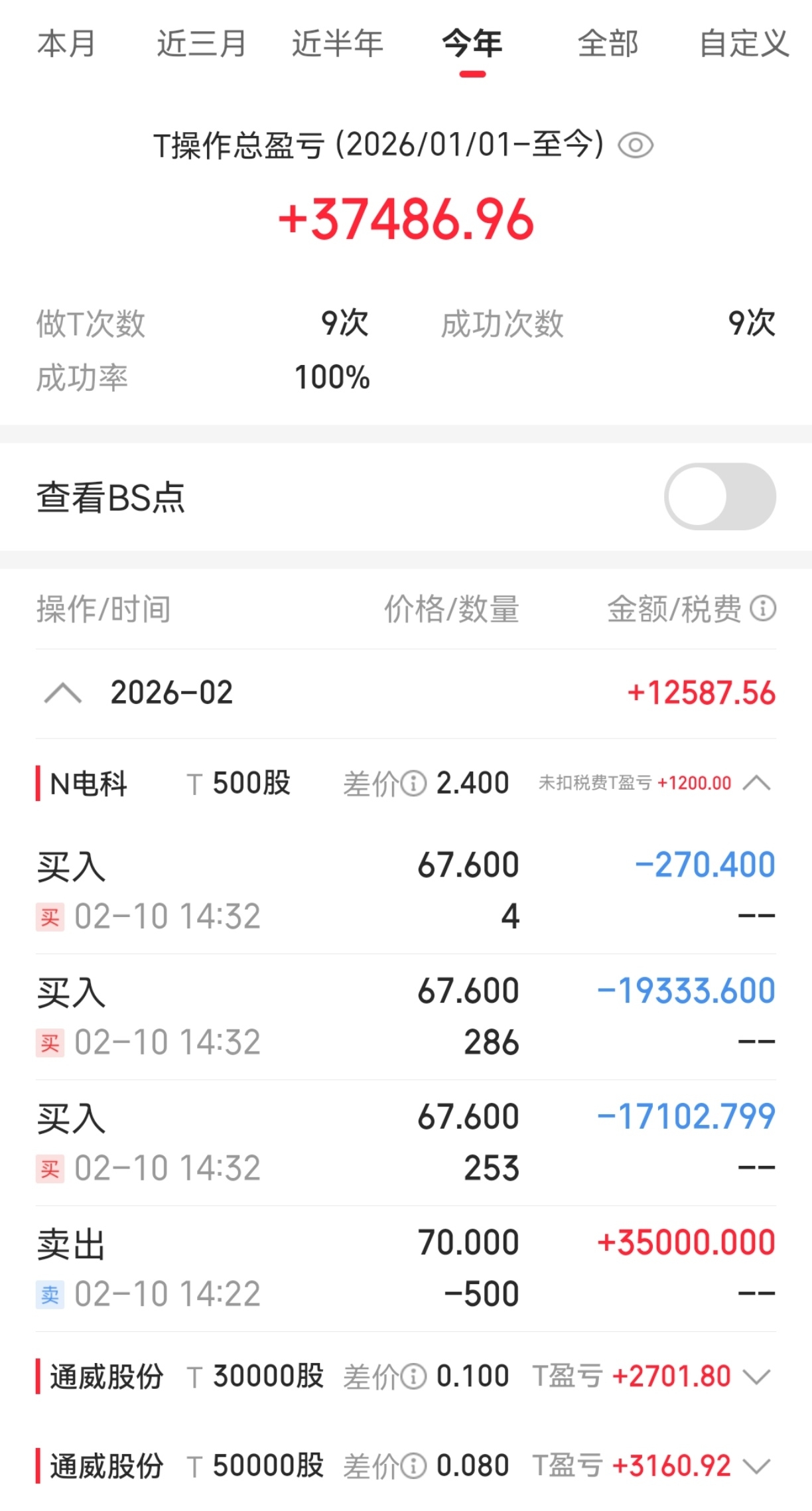中签的电科蓝天今天上市,没忍住下午2点多70卖出全部持仓500股,67.60接回来,每股做T收益2.40,多买了43股,通威今天没机会做T。