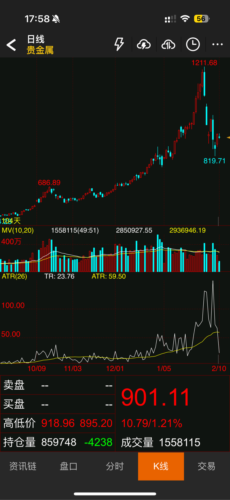 继续空仓!尾盘扫了一遍所有品种,有几个还可以,但是得分一般,加上离假期只有几个交易日了,且节前会有资金流出,综合考量给不了多大的利润空间,所以便作罢。以下是贵金属板块指数,有点经验的朋友也许都能看出点儿东西。(个人交易笔记,投资有风险,请勿跟单!)