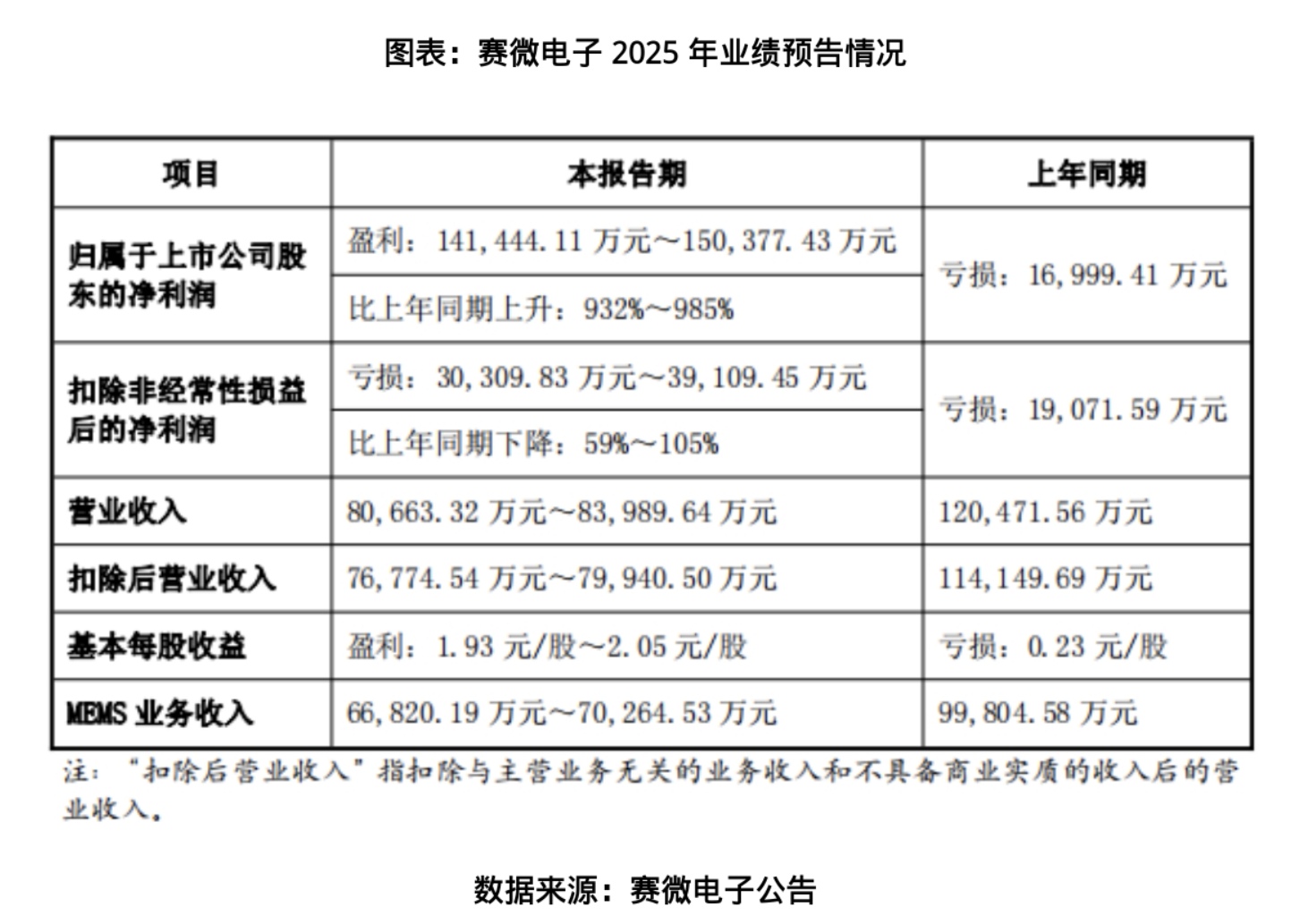 一边是归母净利润同比狂飙超9倍、成功扭亏为盈,一边是扣非净利润亏损扩大至3亿元以上,主营业务持续承压。赛微电子(300456.SZ)2025年业绩预告呈现的业绩反差,究竟是短期阵痛还是长期隐忧?如今,这家国内MEMS代工企业的战略转型,正迎来最关键的考验。