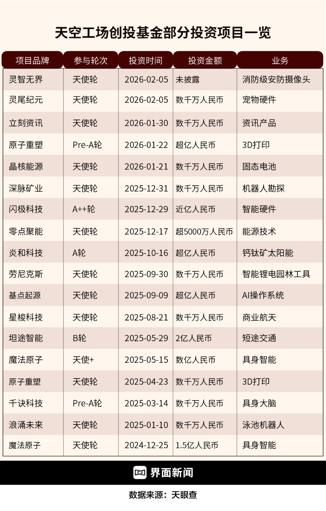 公开资料显示,天空工场创投基金成立于2023年,重点目标是AI及泛机器人上下游产业链。据创业邦统计的2025年1-11月新增备案产业投资基金数量,天空工场创投成为该时期国内风投机构募资数量和规模的双料第一。