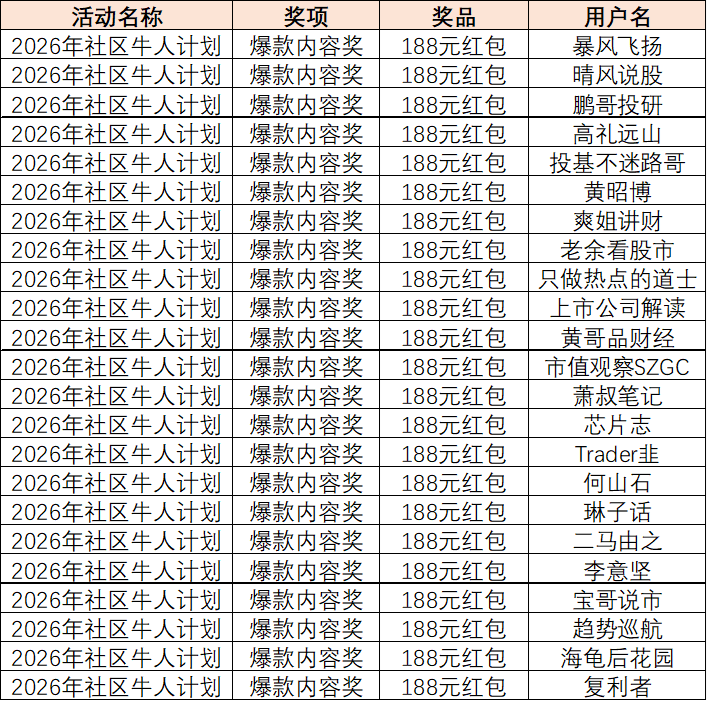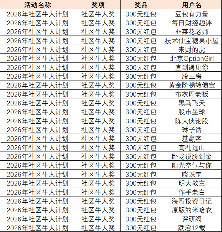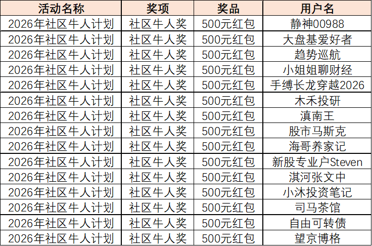 发布精彩观点、在东方财富社区与海量股友互动讨论,即有机会做社区牛人、瓜分万元现金和百万流量!快带话题#社区牛人计划#发布内容、分享投资经验、参与2026社区牛人计划吧!