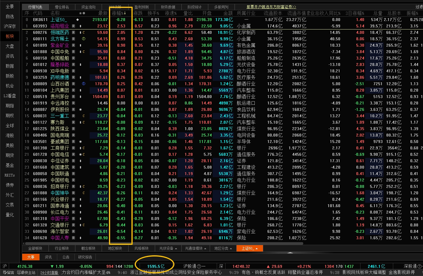 资源领涨 50 权重
