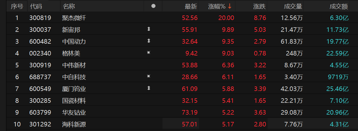 固态电池概念盘中震荡拉升,新宙邦涨超10%,此前聚杰微纤回封20cm涨停,中国动力、格林美、中伟新材等跟涨。