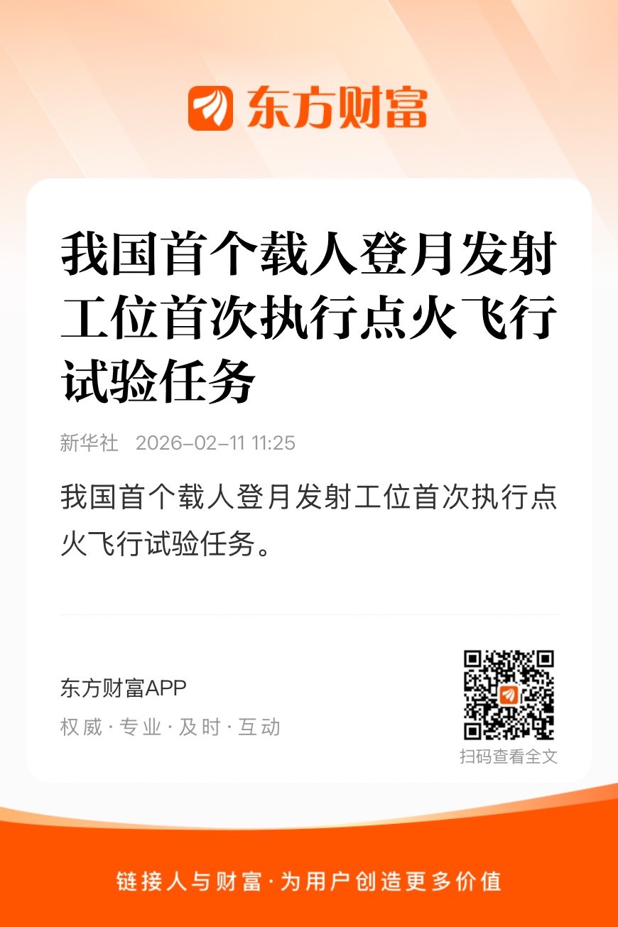 我国首个载人登月发射工位首次执行点火飞行试验任务。