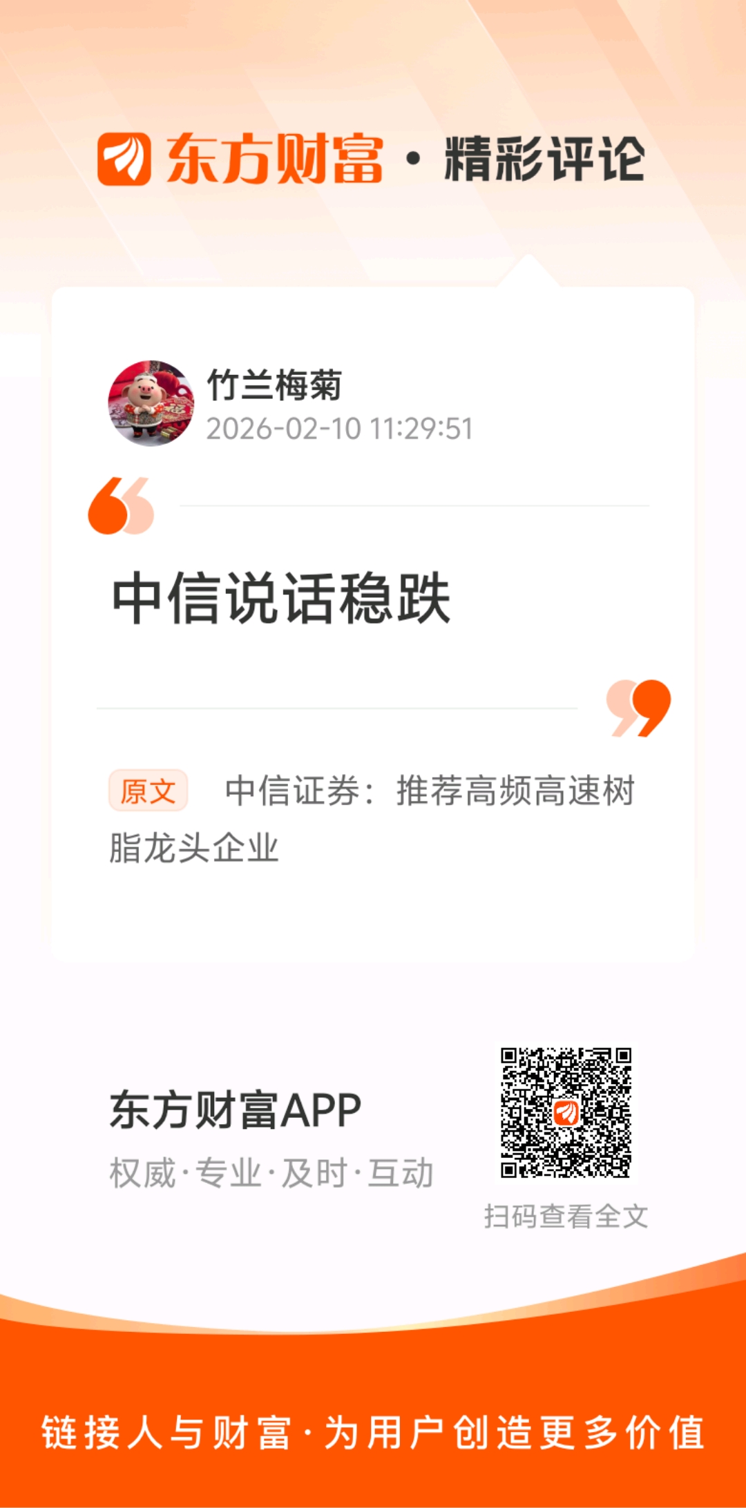温馨提示: 1.根据《证券法》规定,禁止编造、传播虚假信息或者误导性信息,扰乱证券市场;2.用户在本社区发表的所有资料、言论等仅代表个人观点,与本网站立场无关,不对您构成任何投资建议。用户应基于自己的独立判断,自行决定证券投资并承担相应风险。《东方财富社区管理规定》