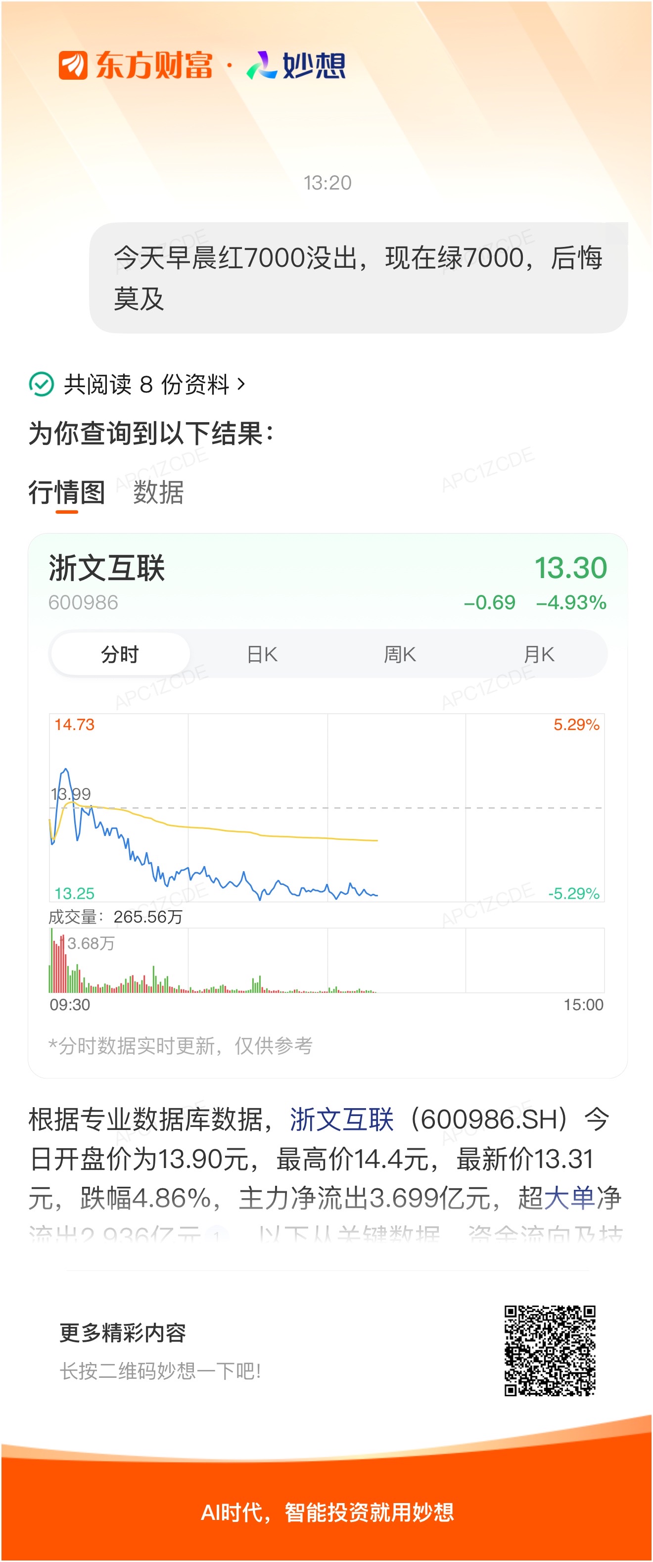 #@妙想,你怎么看?# 妙想一下:今天早晨红7000没出,现在绿7000,后悔莫及