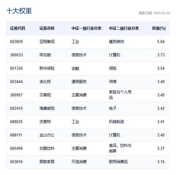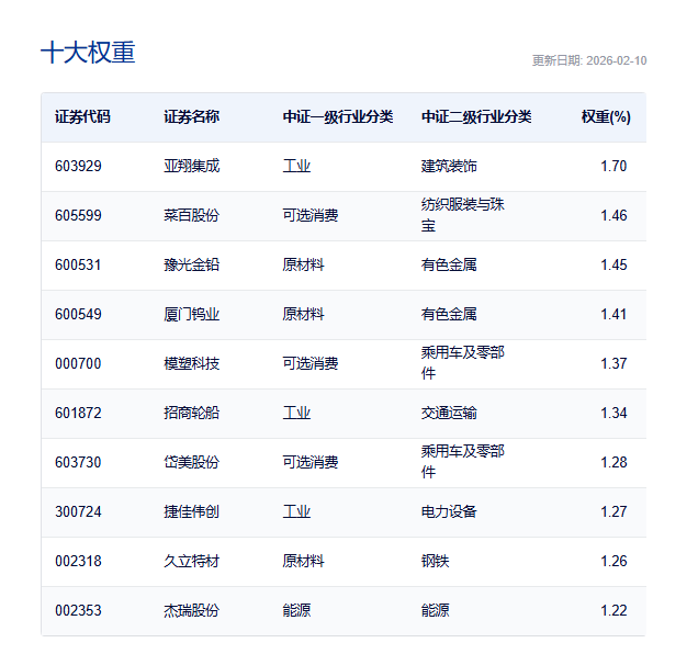 前十大成分股也偏向中小市值。