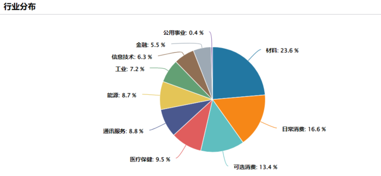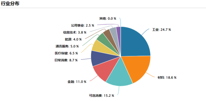 从行业分布来看,上游的材料+能源占比比较重,合在一起将近30%,其次是消费。