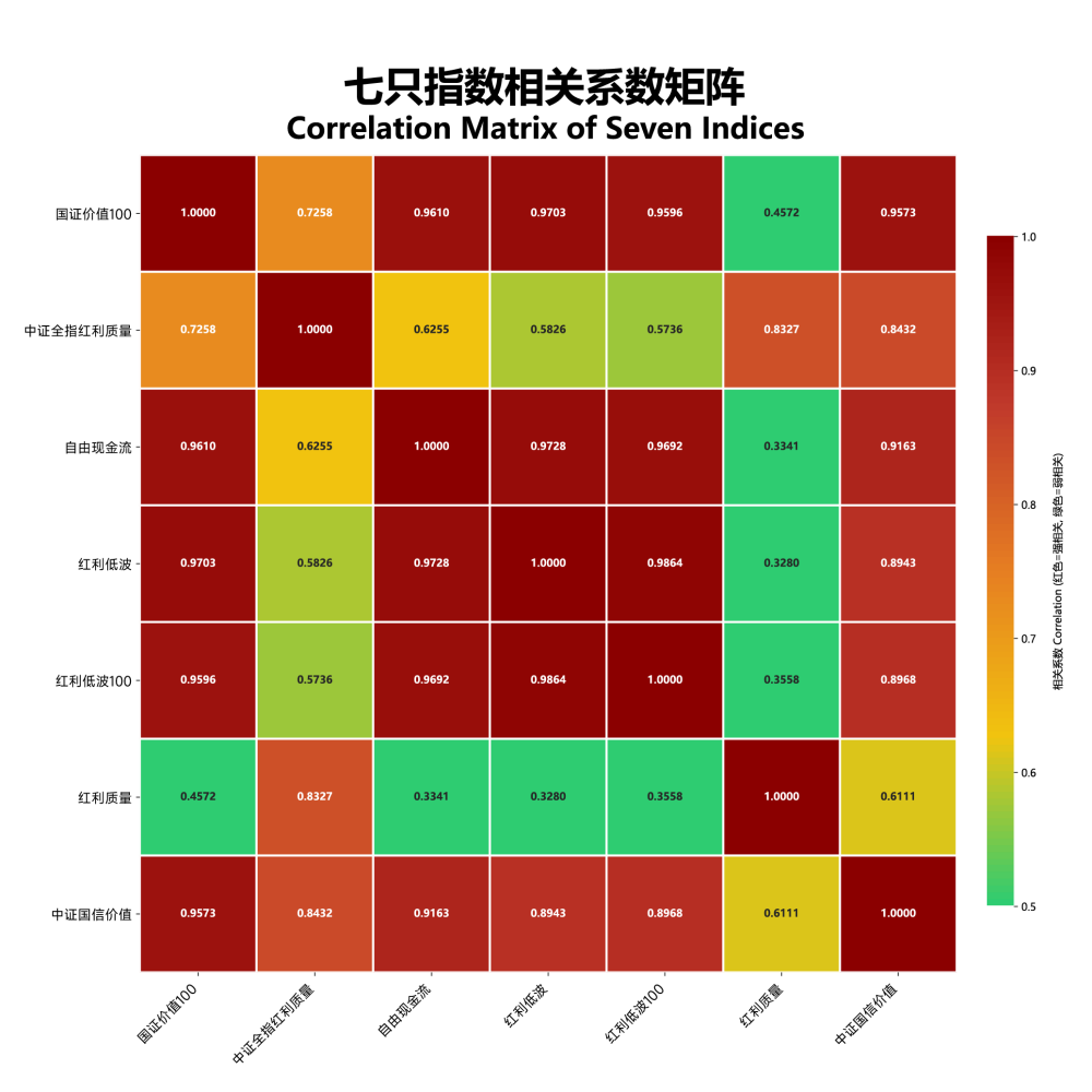 我也用Claude做了一组相关性分析,从2014年以来,除红利质量与其他几个指数相关性较弱之外,其他这似乎整体相关性更强。