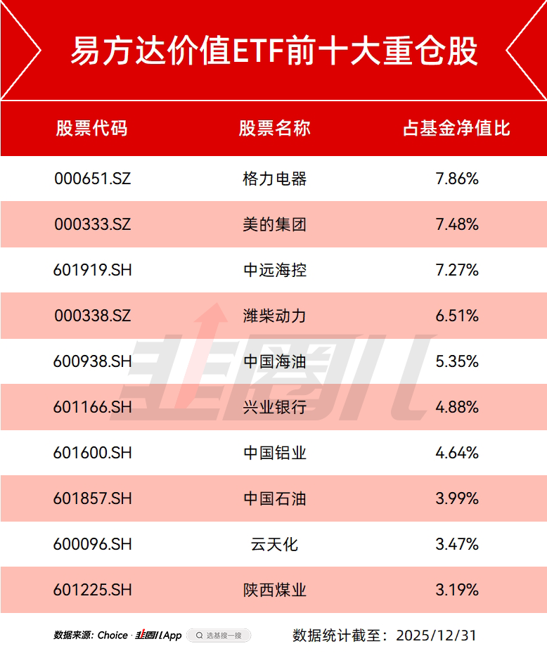 国证指数官网,我看不到样本详情,这里通过易方达价值ETF的季报数据来看。
