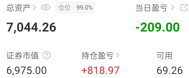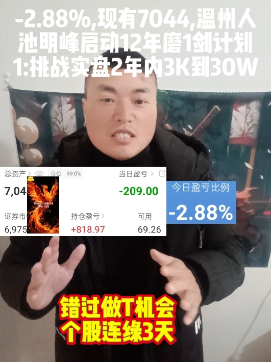 -2.88%,现有7044,温州人池明峰启动12年磨1剑计划,1:挑战实盘2年内3K到30W#股票#实盘#励志#自信