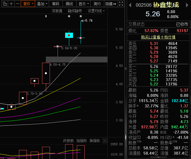 早盘集合竞价大幅快速回落跌停,好在紫金进场拉动股价上涨,5.27的位置开盘,随后冲高5.74遇阻回落那我就止盈离场,相信按照我计划来执行的朋友都是稳赚不赔的了。