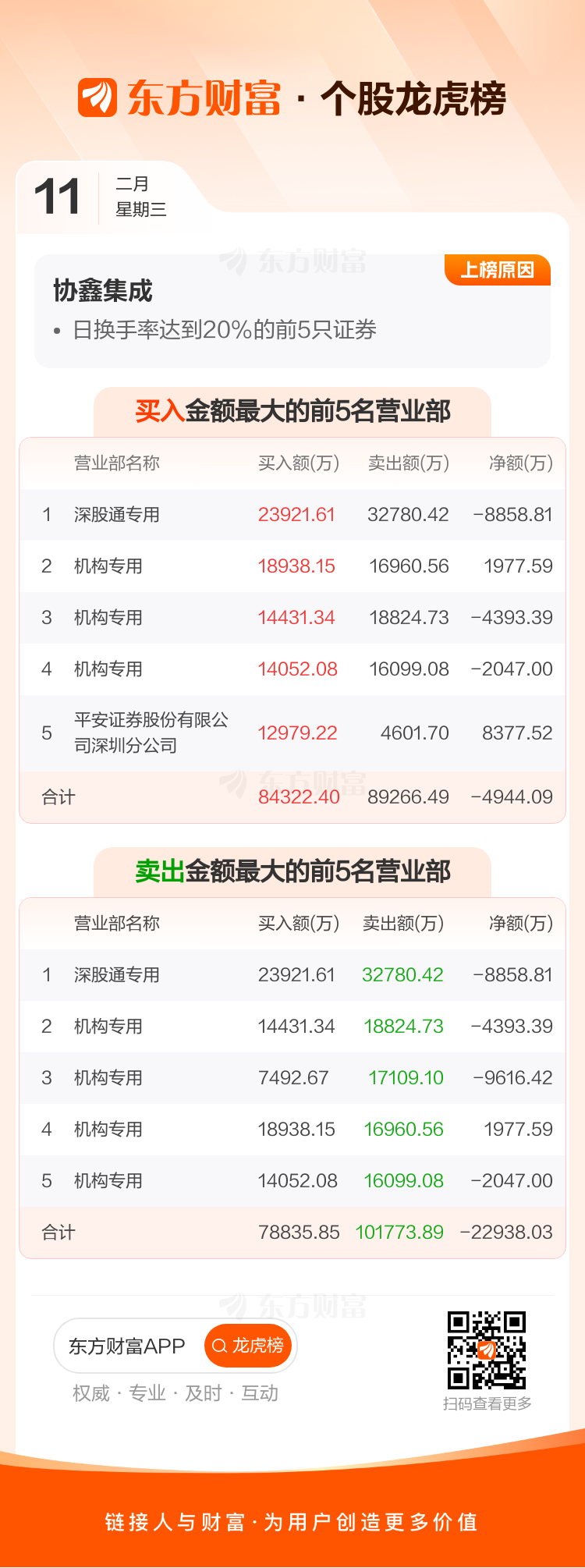 交易所2026年2月11日公布的交易公开信息显示,协鑫集成因成为日换手率达到20%的前5只证券上榜。协鑫集成当日收报5.26元,涨跌幅0.00%,偏离值32.77%,换手率32.77%,成交额102.84亿。