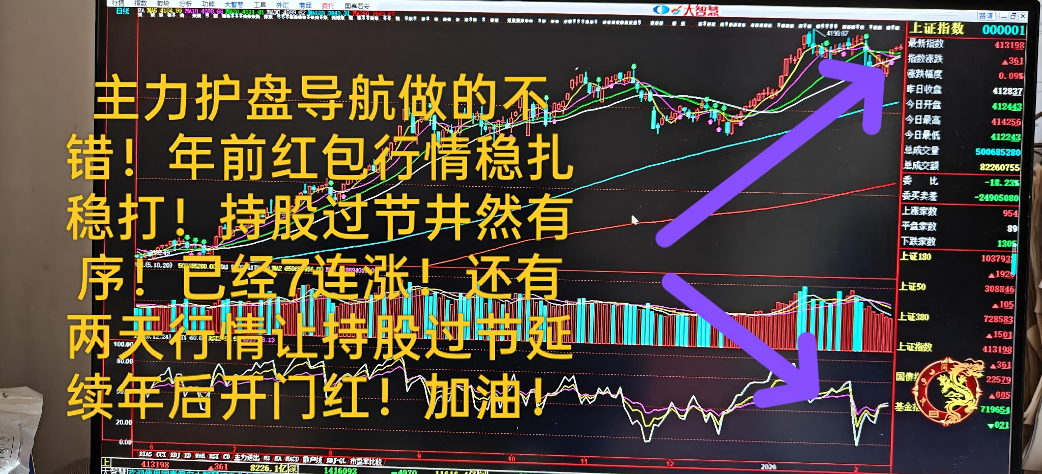 主力护盘导航做的不错!年前红包行情稳扎稳打!持股过节井然有序!已经7连涨!还有两天行情让持股过节延续年后开门红!加油!