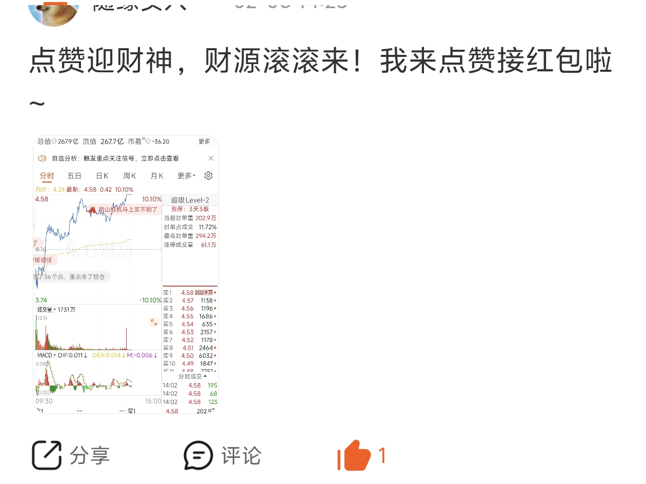 点赞迎财神,财源滚滚来!我来点赞接红包啦~