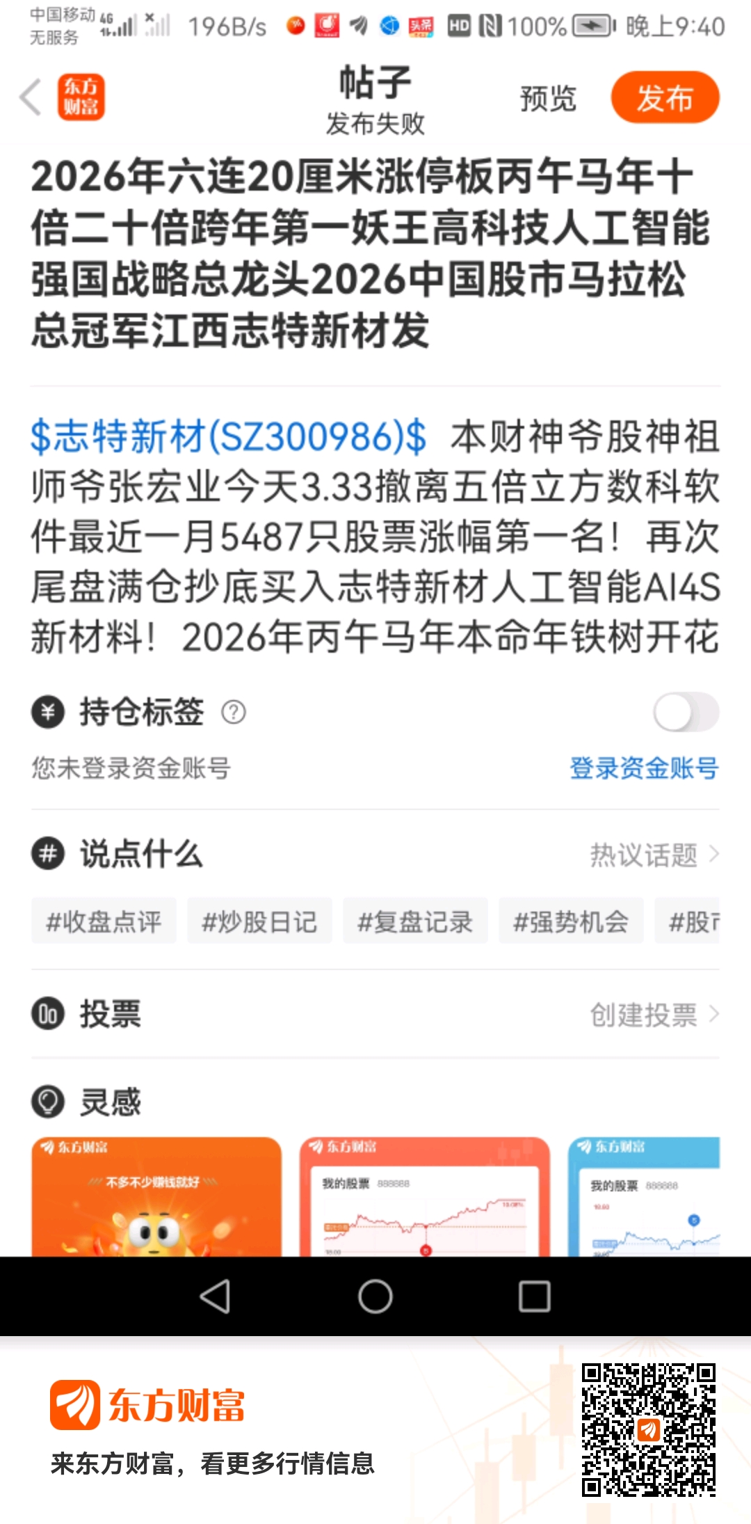 温馨提示: 1.根据《证券法》规定,禁止编造、传播虚假信息或者误导性信息,扰乱证券市场;2.用户在本社区发表的所有资料、言论等仅代表个人观点,与本网站立场无关,不对您构成任何投资建议。用户应基于自己的独立判断,自行决定证券投资并承担相应风险。《东方财富社区管理规定》
