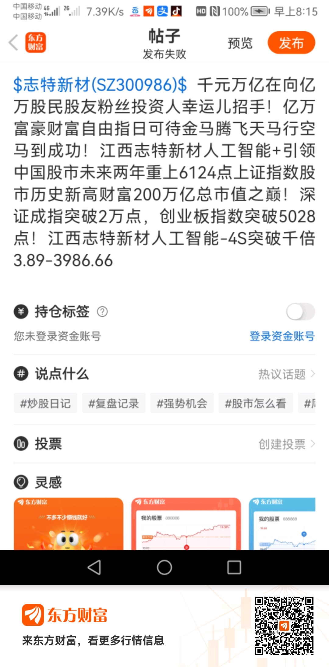 温馨提示: 1.根据《证券法》规定,禁止编造、传播虚假信息或者误导性信息,扰乱证券市场;2.用户在本社区发表的所有资料、言论等仅代表个人观点,与本网站立场无关,不对您构成任何投资建议。用户应基于自己的独立判断,自行决定证券投资并承担相应风险。《东方财富社区管理规定》