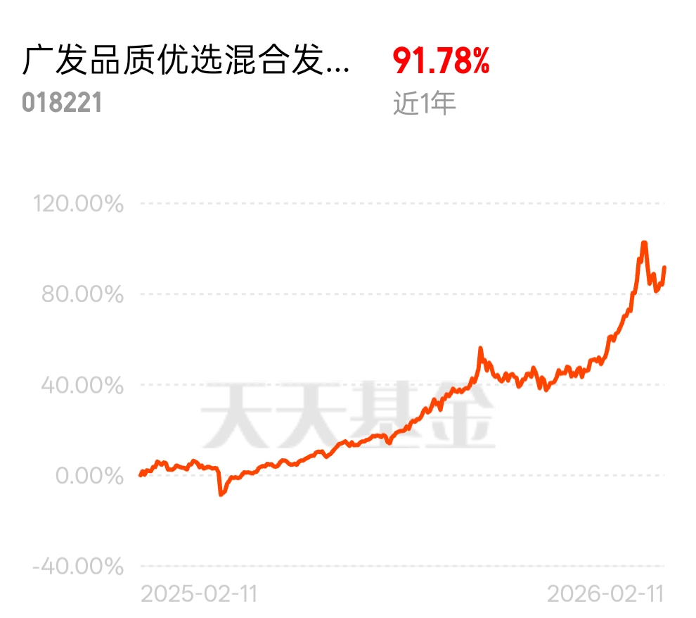 #Seedance 2.0爆火!AI应用或迎大爆发,Seedance 2.0爆火!AI应用或迎大爆发# 盘面上又是资源股领跑,稀土、钨矿这些势头很猛。核心逻辑还是那四个字:供给受限。有分析说,到2026年全球电解铝可能都一直都处于供缺状态。之前我就琢磨可以借道基金去抄上游的底,像广发品质优选混合发起式C反应挺快,净值抬了4.14%,稳稳跟上了这波对供给敏感的节奏。$广发品质优选混合发起式C$