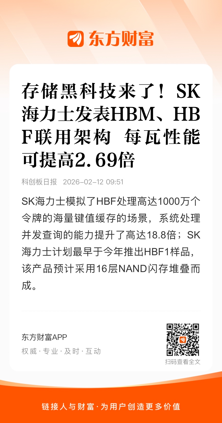 广发证券认为,当前大模型的参数规模已经达到万亿级别,上下文长度普遍超过128K,HBM的容量已难以满足AI大模型对于内存容量的要求。在研的HBF存储容量有望达到现有HBM的8至16倍,有望将GPU的存储容量扩展至4TB,或成为满足AI大模型内存容量要求的最佳方案。